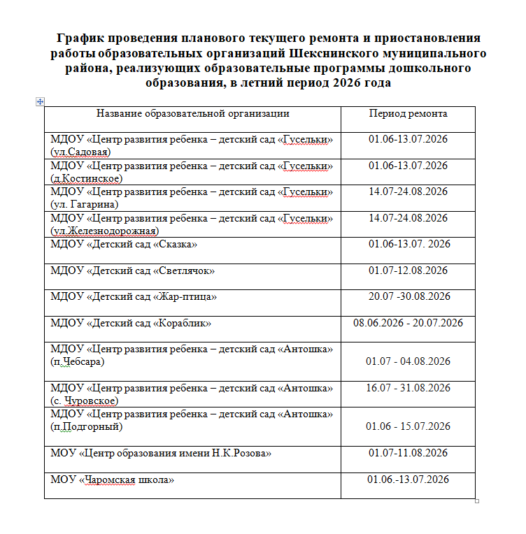 Поздравляю вас с чудесным весенним праздником — Международным женским днём! Пусть этот день наполнит ваши сердца теплом и радостью. Вы — настоящие хранительницы домашнего очага, вдохновляющие наставники и заботливые матери. Вы — источник тепла и заботы, ваша улыбка способна осветить даже самый пасмурный день. В этот особенный день хочется пожелать вам много счастья, любви и вдохновения. Ваш труд и самоотверженность заслуживают самого глубокого уважения и благодарности! Пусть весна принесет вам новые силы, вдохновение и множество светлых моментов. Желаю вам крепкого здоровья, счастья, гармонии и поддержки близких. Пусть каждый ваш день будет наполнен улыбками, радостями и маленькими чудесами, а мечты сбываются с лёгкостью! С праздником весны, красоты и женственности! Начальник Управления образования Н.А. Левина ОБЪЯВЛЕНИЕ!В целях информирования родителей (законных представителей) детей о комплексе государственных услуг и мерах поддержки, входящих в жизненную ситуацию «Рождение ребенка в Вологодской области», в том числе получения муниципальной услуги «Прием заявлений, постановка на учет и зачисление детей в образовательные учреждения, реализующие образовательную программу дошкольного образования (детские сады)» на портале ЕПГУ, а также поддержки мероприятий Программы Губернатора области «Семья – оплот Русского Севера» размещаем ссылку на жизненную ситуацию «Рождение ребенка в Вологодской области». https://gosuslugi35.ru/service_cat?categoryToViewId=138&servCatView=3&recCatV iew=1&admLevView=0 ОБЪЯВЛЕНИЕ!Уважаемые родители! Приглашаем вас принять участие во Всероссийской акции «Сдаем вместе. День сдачи ЕГЭ родителями».Единый день сдачи ЕГЭ родителями – это возможность для родителей поменяться местами со своими детьми и пройти всю процедуру ЕГЭ: от прохода в пункт проведения экзамена до получения результатов. ВАЖНО!Номера телефонов доверия ЕГЭ, созданных Рособрнадзором в целях консультационного сопровождения граждан, органов государственной власти субъектов РФ в сфере образования и организаций, осуществляющих образовательную деятельность: телефон для справок: +7(495)198-92-38; телефон доверия ЕГЭ: +7(495)198--93-38. Указанные номера телефонов размещены на официальном сайте Рособрнадзора. ИТОГИ ОПРОСА ГРАЖДАННа основании решения Представительного Собрания Шекснинского муниципального района от 27 ноября 2024 года № 132 «О назначении опроса» в период с 12 декабря 2024 года по 23 декабря 2024 года включительно проведен опрос граждан на территориях сельских поселений Угольское, Чебсарское, Чуровское Шекснинского муниципального района Вологодской области по вопросу реорганизации МОУ «Центр образования им. Н. К. Розова» в форме присоединения к нему МОУ «Чёбсарская школа». В опросе приняли участие 335 человек (152 человека - сельское поселение Угольское Шекснинского муниципального района Вологодской области, 76 человек – сельское поселение Чебсарское Шекснинского муниципального района Вологодской области, 107 человек – сельское поселение Чуровское Шекснинского муниципального района Вологодской области). По результатам опроса 246 человек выступили в поддержку осуществления мероприятий по реорганизации МОУ «Центр образования им. Н. К. Розова» в форме присоединения к нему МОУ «Чёбсарская школа», 89 человек выступили против реализации указанных мероприятий.